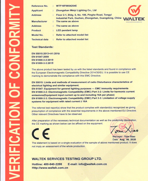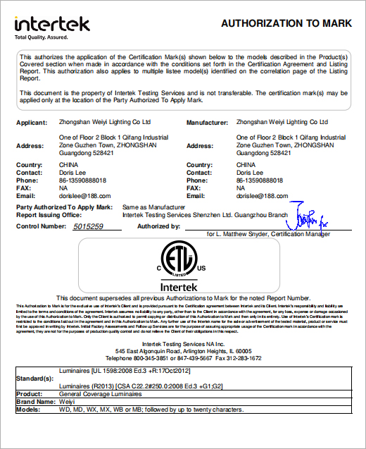 Certifications ETL,ISO9001,CE,ROHS,WCA,CCC.