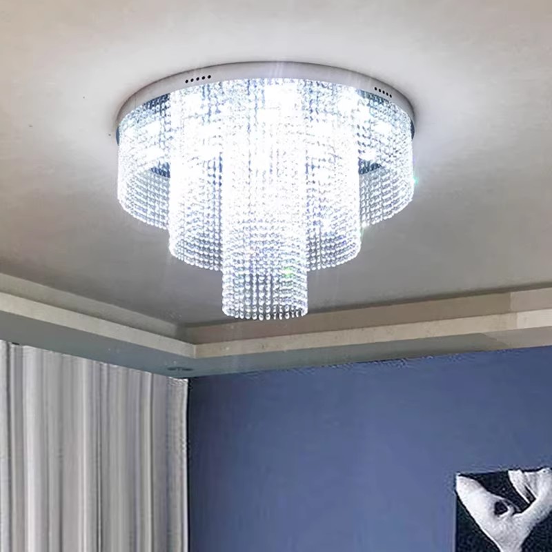 Elevate your interior with the dazzling brilliance of our Tiered Crystal Ceiling Light. This show-stopping fixture features a sleek, circular stainless steel frame adorned with cascading layers of clear crystal beads, creating a luminous, multi-tiered silhouette that commands attention. The defining feature is the precision-cut crystal strands, which capture and refract internal LED light to produce a sparkling, waterfall-like effect throughout the room. Framed by a polished stainless steel base, the fixture sits flush to the ceiling, making it the epitome of minimalist glamour—ideal for luxury living rooms, grand dining halls, or high-end hotel lobbies. As a dedicated lighting manufacturer, we can fully customize the tier count, crystal colors, and metal finish to perfectly match your project's scale and style.