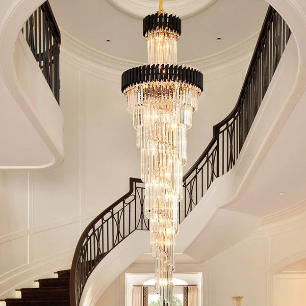 Elevate your interior with the opulent allure of our Luxury Custom Spiral Crystal Staircase Chandelier. This breathtaking fixture features a cascading, spiral design, crafted from premium, clear crystal rods that refract light to cast a warm, golden glow. The polished gold or black metal frame adds a touch of modern sophistication, while the layered, spiral structure creates a sense of depth and movement. The grand, cascading form makes it an ideal centerpiece for high-end hotels, opulent villas, and grand dining rooms. As a dedicated lighting manufacturer, we specialize in non-standard customization—from dimensions and shape to color and finish—to perfectly match your project’s unique vision. This statement chandelier delivers timeless elegance and unparalleled craftsmanship, transforming ordinary spaces into extraordinary experiences.