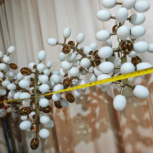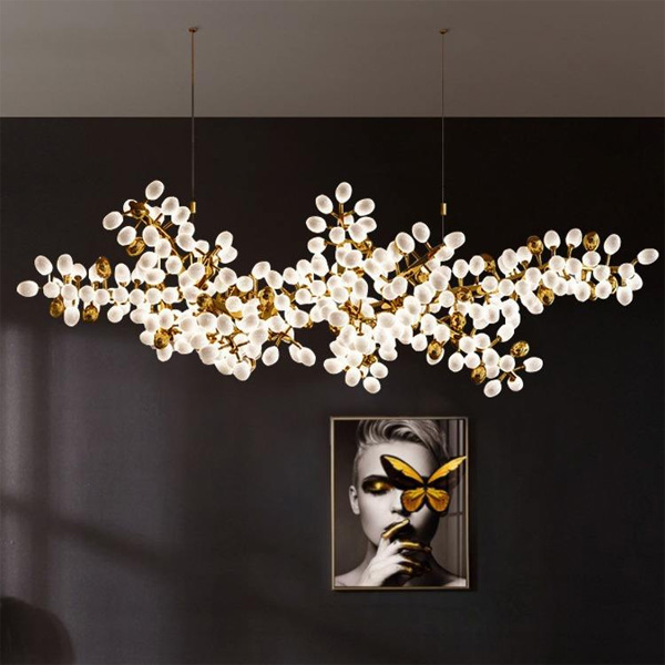 Elevate your interior with the enchanting allure of our Blooming Splendor Branch Chandelier. This show-stopping fixture features a fluid, organic arrangement of delicate gold metal branches, adorned with clusters of frosted white glass orbs that mimic the lush vibrancy of blooming blossoms. The defining feature is the milky white orbs, which diffuse internal light to produce a soft, ambient glow with a mesmerizing, nature-inspired effect throughout the space. Suspended from a sleek ceiling mount, the sprawling branches appear to float effortlessly, making this fixture the epitome of artistic luxury—ideal for dining rooms, living areas, or high-end commercial interiors. As a dedicated lighting manufacturer, we can fully customize the branch arrangement, orb colors, and overall dimensions to perfectly match your project’s scale and style.