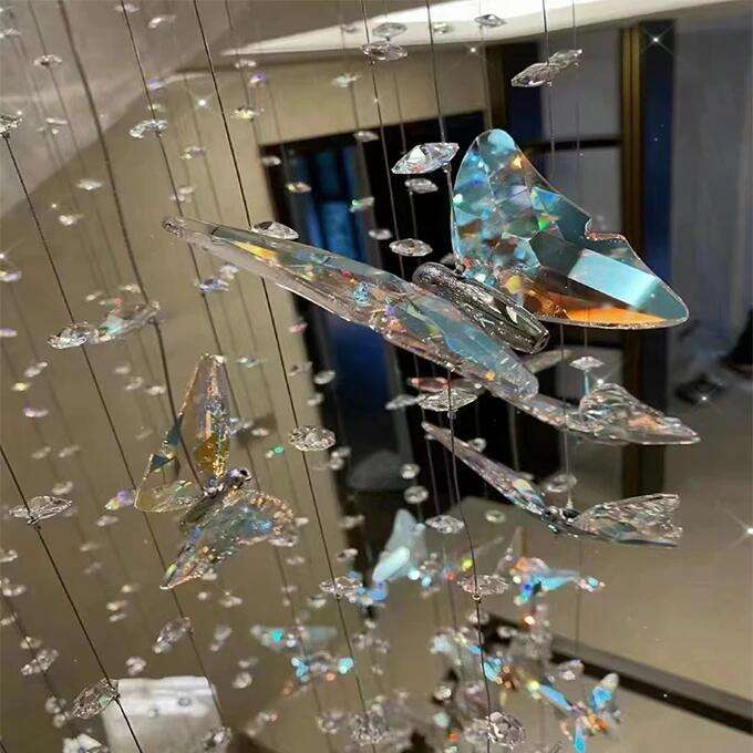 Elevate your multi-level space with the whimsical elegance of our Cascading Crystal Butterfly Chandelier. This show-stopping fixture features a dynamic, waterfall-like arrangement of delicate iridescent crystal butterflies, suspended at staggered heights by thin, transparent wires from a sleek circular ceiling plate, creating a luminous, nature-inspired silhouette that commands attention. The defining feature is the precision-cut crystal, which captures and refracts internal LED light to produce a dazzling, rainbow-like effect throughout the space. Framed by a polished stainless steel base, the fixture is the epitome of modern luxury—ideal for grand staircases, LOFTs, or duplex apartments. As a dedicated lighting manufacturer, we can fully customize the number of butterflies, wire lengths, and metal finish to perfectly match your project’s scale and style.