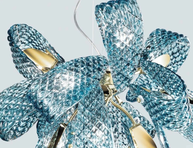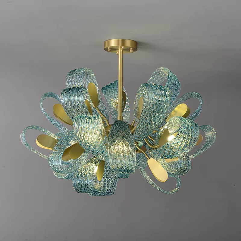 Elevate your interior with the captivating allure of our Blue Textured Glass Chandelier Collection. This show-stopping fixture features a dynamic arrangement of handcrafted, diamond-patterned glass elements in rich blue and translucent teal tones, creating a fluid, organic silhouette that commands attention. The defining feature is the textured glass surface, which captures and refracts internal light to produce a shimmering, aquatic-inspired effect throughout the space. Framed by a polished gold metal structure, the glass elements appear to float effortlessly, making this fixture the epitome of modern artistic luxury—ideal for upscale dining rooms, contemporary living spaces, or high-end commercial interiors. As a dedicated lighting manufacturer, we can fully customize the glass colors, arrangement, and overall dimensions to perfectly match your project’s scale and style.