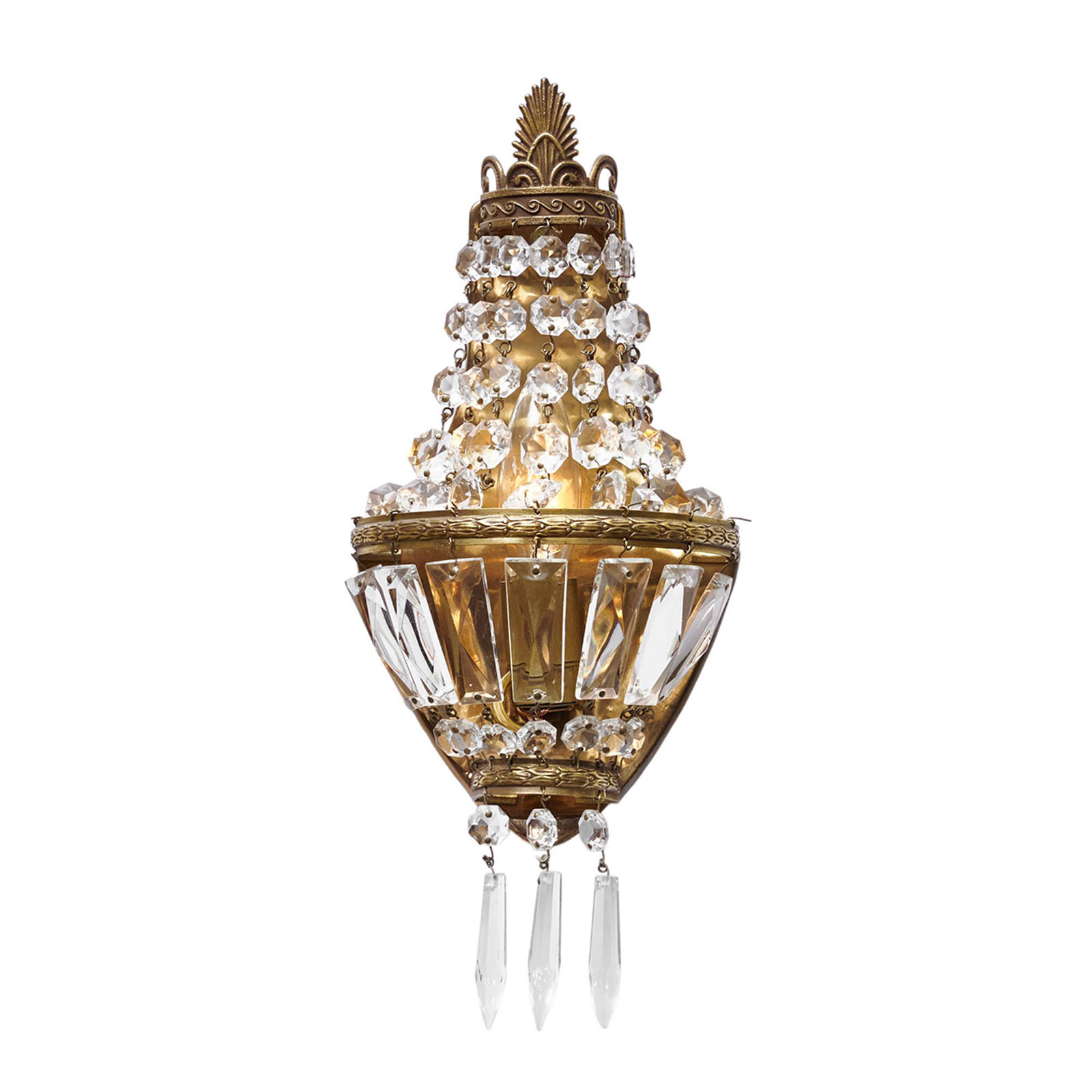 Elevate your bedroom or hallway with the timeless elegance of our Vintage Crystal Wall Sconce. This exquisite fixture features an ornate, antique gold-toned metal frame, adorned with cascading strands of precision-cut crystal, creating a luminous, crown-like silhouette that commands attention. The defining feature is the flawless crystal, which captures and refracts internal light to produce a warm, ambient glow with a dazzling, jewel-like effect throughout the space. Mounted on a sleek backplate, this fixture is the epitome of classic luxury—ideal for adding a touch of opulence to bedrooms, hallways, or entryways. As a dedicated lighting manufacturer, we can fully customize the metal finish to perfectly match your decor.