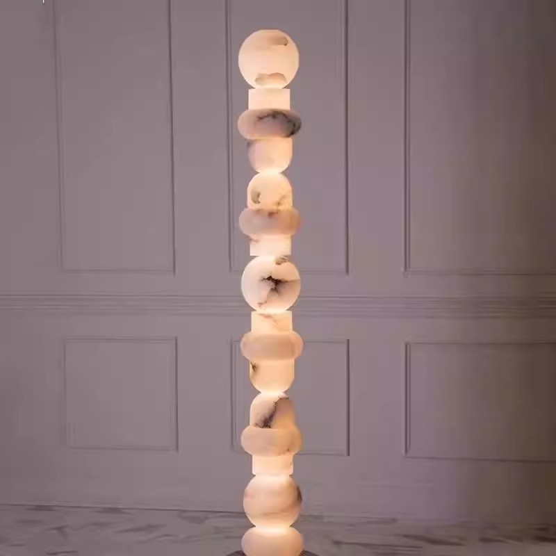 Elevate your bedroom or living space with the modern sophistication of our Stacked Alabaster Floor Lamp. This striking fixture features a vertical design of stacked, natural alabaster discs in varying sizes, creating a sculptural, organic silhouette that commands attention. The defining feature is the translucent alabaster, which diffuses internal LED light to produce a soft, ambient glow with a subtle, stone-like texture throughout the space. Paired with a sleek, dark base, it balances aesthetic charm and stable placement. Equipped with a wired power supply and convenient switch control, this lamp is the epitome of contemporary luxury—ideal for adding a touch of understated elegance to bedrooms, living rooms, or entryways. As a dedicated lighting manufacturer, we can fully customize the finish to perfectly match your decor.