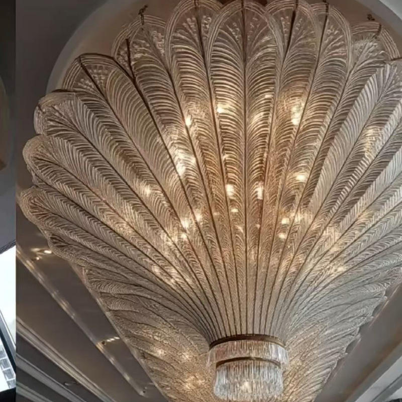 Elevate your interior with the opulent allure of our Luxury Custom Peacock Feather Crystal Chandelier. This breathtaking fixture is a masterpiece of craftsmanship, featuring an intricate design of layered, peacock feather-inspired crystal elements that radiate a warm, golden glow. The delicate, fan-shaped crystals create a sense of movement and depth, casting a soft, diffused light that enhances the luxurious ambiance of any space. The grand, cascading form makes it an ideal centerpiece for high-end hotels, opulent villas, and grand banquet halls. As a dedicated lighting manufacturer, we specialize in non-standard customization—from dimensions and shape to color and finish—to perfectly match your project’s unique vision. This statement chandelier delivers timeless elegance and unparalleled craftsmanship, transforming ordinary spaces into extraordinary experiences.