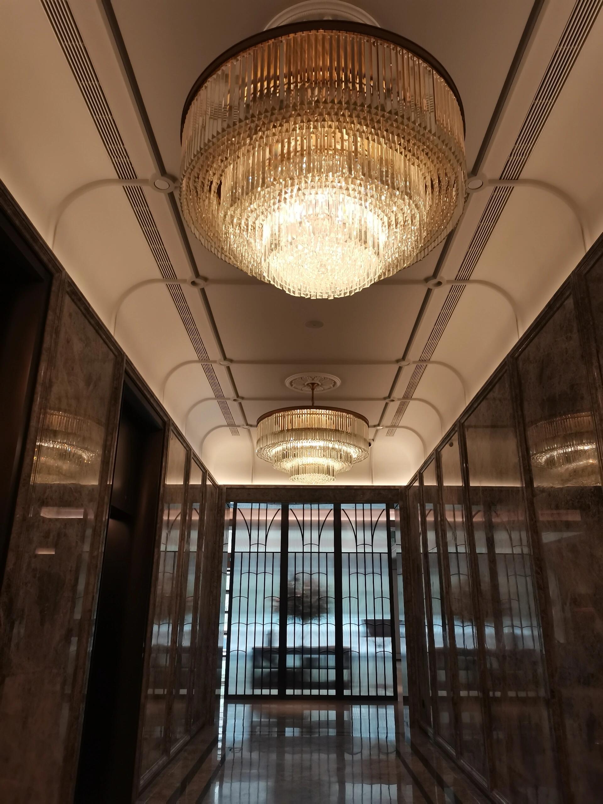 This luxury classic crystal chandelier features hundreds of transparent elongated crystal rods hanging vertically in a neat, circular cloud-like cascade. Light emits from the central LED source, refracting and reflecting through the crystal rods to create a dazzling and brilliant glow. The antique bronze or champagne gold metal base and frame exude a stable and elegant charm, perfectly blending the gorgeousness of crystal with the texture of metal. As an iconic decorative fixture in high-end hotel lobbies, luxury villa entrances, and five-star clubs, it creates a solemn, elegant, and luxurious spatial charm through ultimate light and shadow.