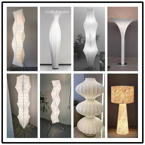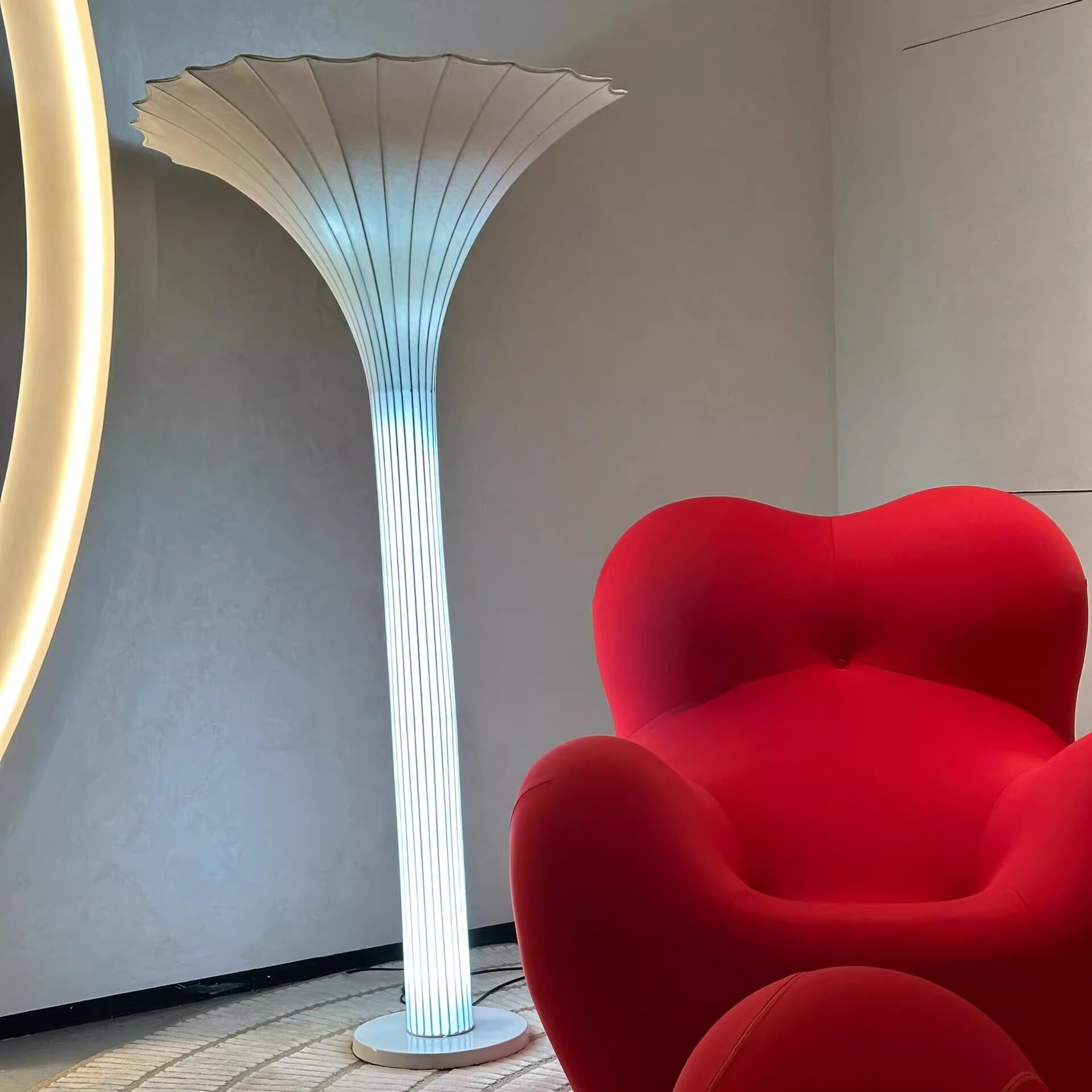 Italian Minimalist Style Floor Lamp with Silk Shade for Sales Centers, Hotel Lobbies and Show Apartments