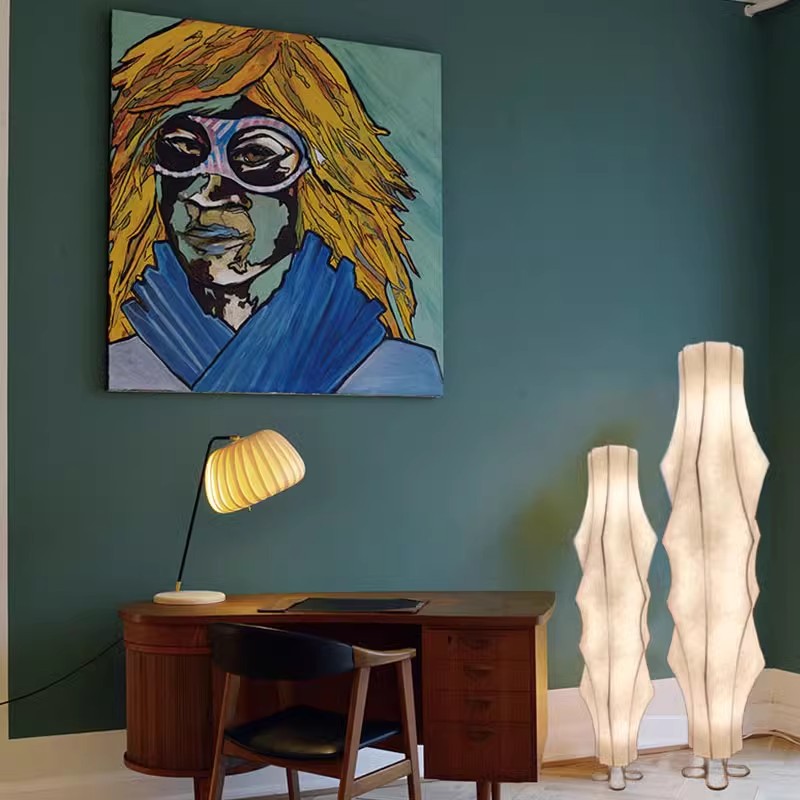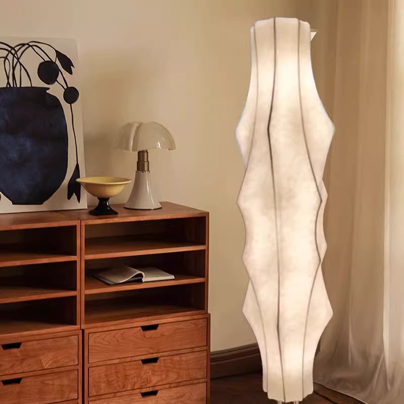 Japanese Wabi-Sabi Style Natural Silk Retro Zen Floor Lamp for Living Room, Study, Beside Sofa, Tea Room and Exhibition Hall Ambience Light