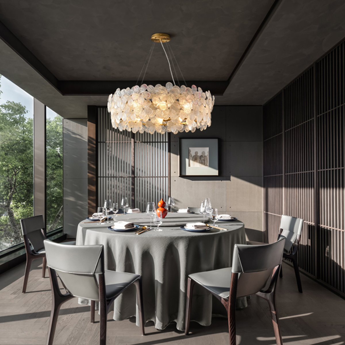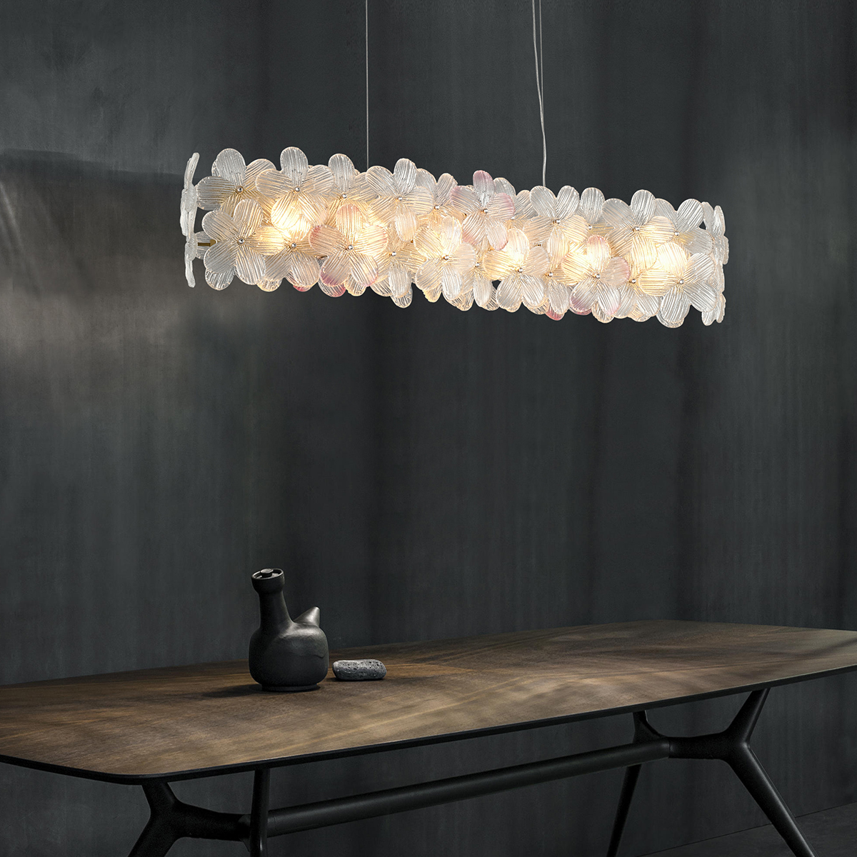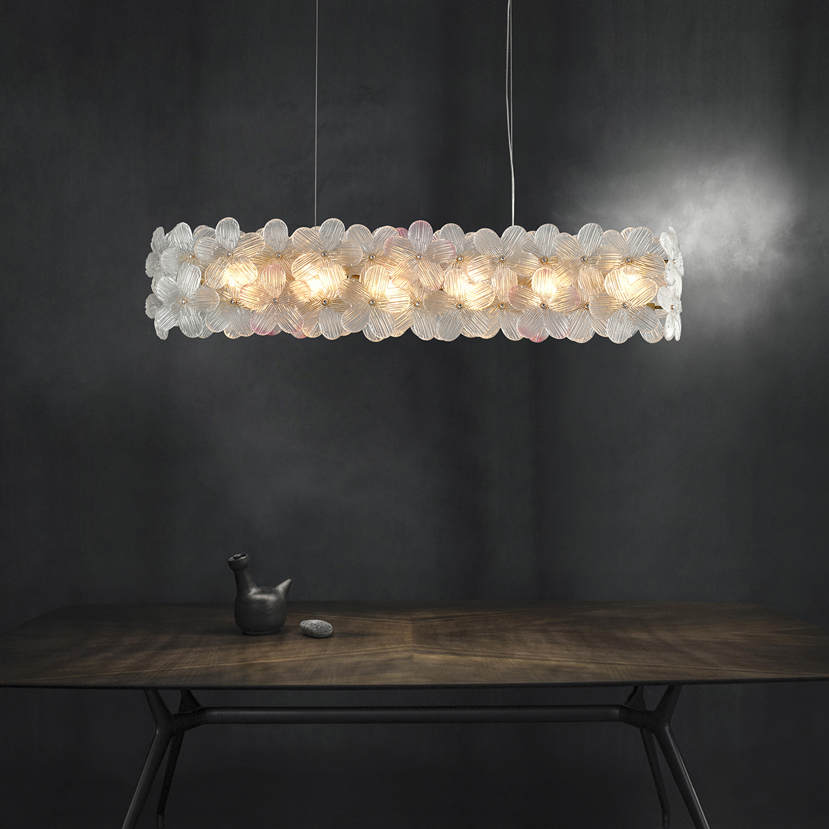 Perfect for living rooms, dining areas, bedrooms, or any decorative space, this chandelier combines functionality with artistic design. Each glass piece is shaped like a delicate flower, arranged in a beautiful circular or rectangular pattern that diffuses light softly throughout your space.