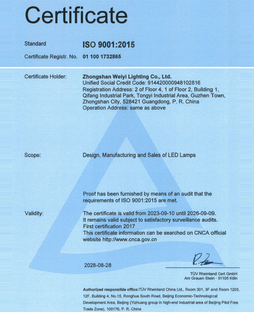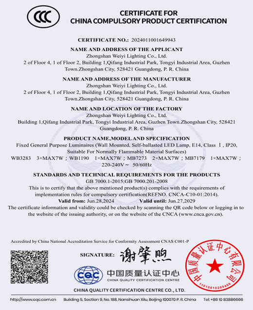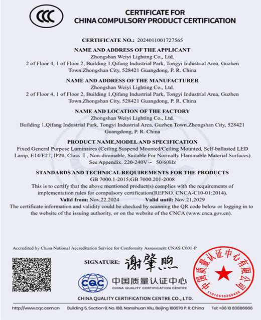 Certifications ETL,ISO9001,CE,ROHS,WCA,CCC.