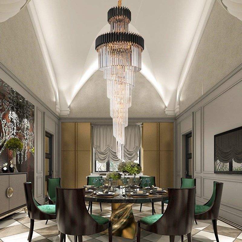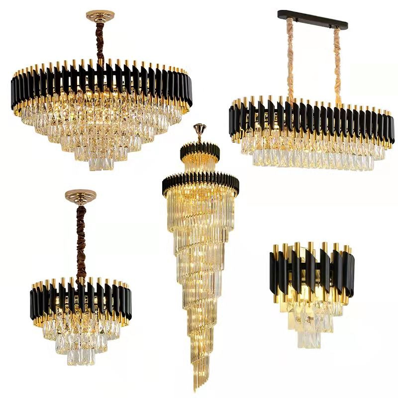 Elevate your interior with the opulent allure of our Luxury Custom Spiral Crystal Staircase Chandelier. This breathtaking fixture features a cascading, spiral design, crafted from premium, clear crystal rods that refract light to cast a warm, golden glow. The polished gold or black metal frame adds a touch of modern sophistication, while the layered, spiral structure creates a sense of depth and movement. The grand, cascading form makes it an ideal centerpiece for high-end hotels, opulent villas, and grand dining rooms. As a dedicated lighting manufacturer, we specialize in non-standard customization—from dimensions and shape to color and finish—to perfectly match your project’s unique vision. This statement chandelier delivers timeless elegance and unparalleled craftsmanship, transforming ordinary spaces into extraordinary experiences.