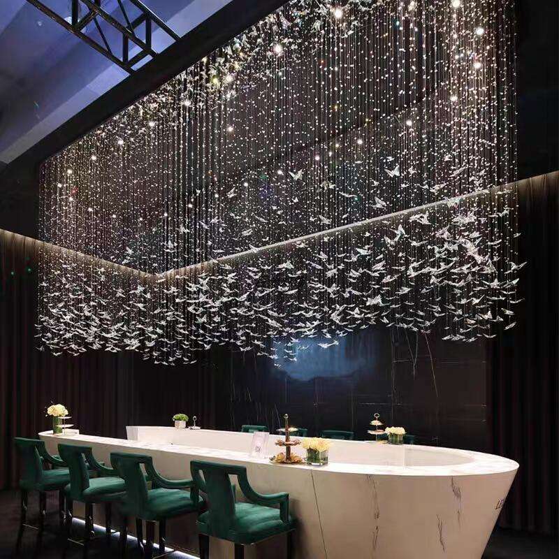 Elevate your multi-level space with the whimsical elegance of our Cascading Crystal Butterfly Chandelier. This show-stopping fixture features a dynamic, waterfall-like arrangement of delicate iridescent crystal butterflies, suspended at staggered heights by thin, transparent wires from a sleek circular ceiling plate, creating a luminous, nature-inspired silhouette that commands attention. The defining feature is the precision-cut crystal, which captures and refracts internal LED light to produce a dazzling, rainbow-like effect throughout the space. Framed by a polished stainless steel base, the fixture is the epitome of modern luxury—ideal for grand staircases, LOFTs, or duplex apartments. As a dedicated lighting manufacturer, we can fully customize the number of butterflies, wire lengths, and metal finish to perfectly match your project’s scale and style.