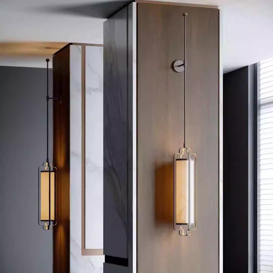 Elevate your modern interior with the timeless elegance of our New Chinese Style Vertical Wall Sconce. This sophisticated fixture features a sleek, elongated design with a matte black or gold-toned metal frame, enclosing a warm, frosted glass shade that creates a soft, ambient glow. The defining feature is its minimalist, lantern-inspired silhouette, which captures the essence of traditional Chinese aesthetics while seamlessly integrating with contemporary decor. Mounted on a slender rod, this fixture is the epitome of refined luxury—ideal for adding a touch of understated elegance to living rooms, hallways, or hotel interiors. As a dedicated lighting manufacturer, we can fully customize the finish and size to perfectly match your project’s scale and style.