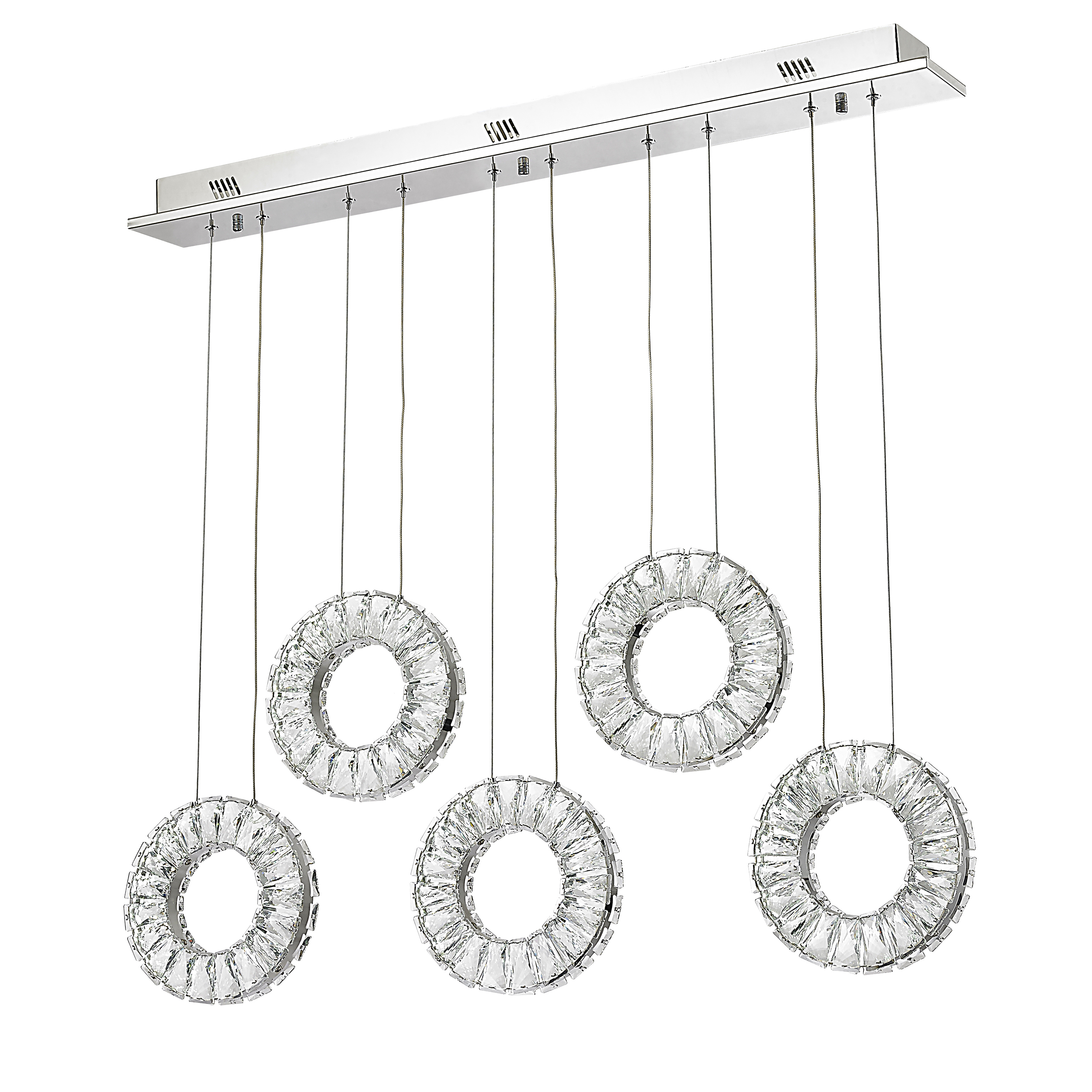 This minimalist crystal LED chandelier features a sleek brushed stainless steel base and 4/5 interlocking K9 crystal rings, creating a modern, layered focal point. Adjustable suspension cables let you customize the height, while energy-efficient LED chips deliver bright, even illumination with a 3000K–6000K color temperature range. Ideal for dining rooms, living rooms, and open-concept interiors, it blends clean lines with understated luxury, elevating any contemporary space with durable, rust-resistant materials and flicker-free light.