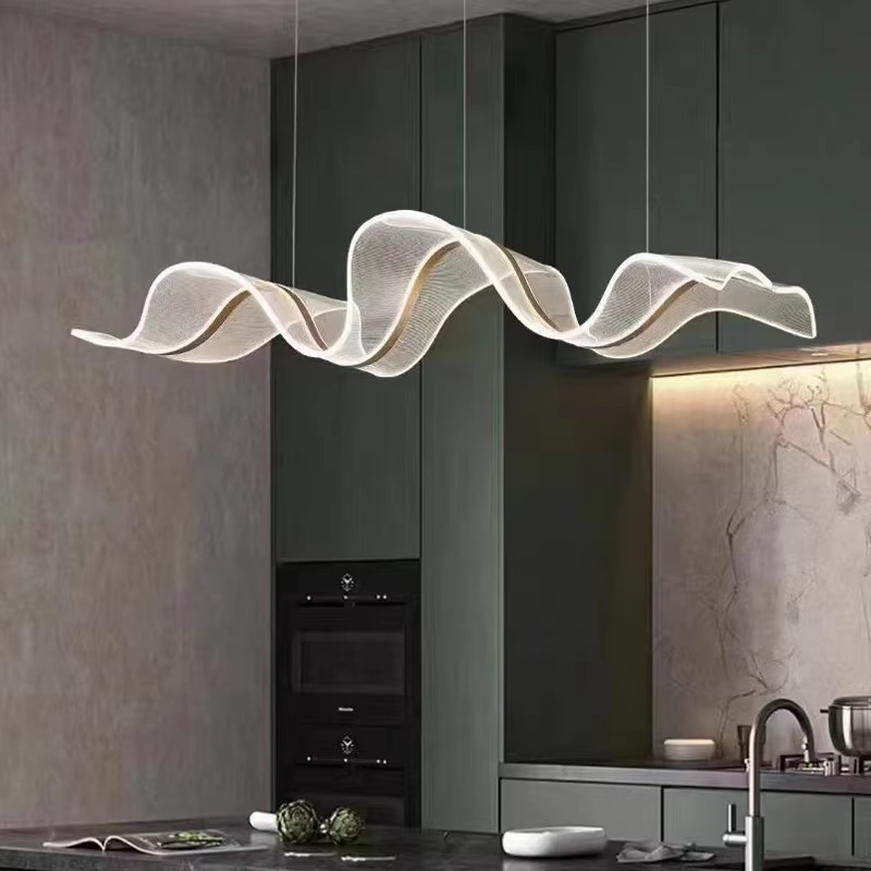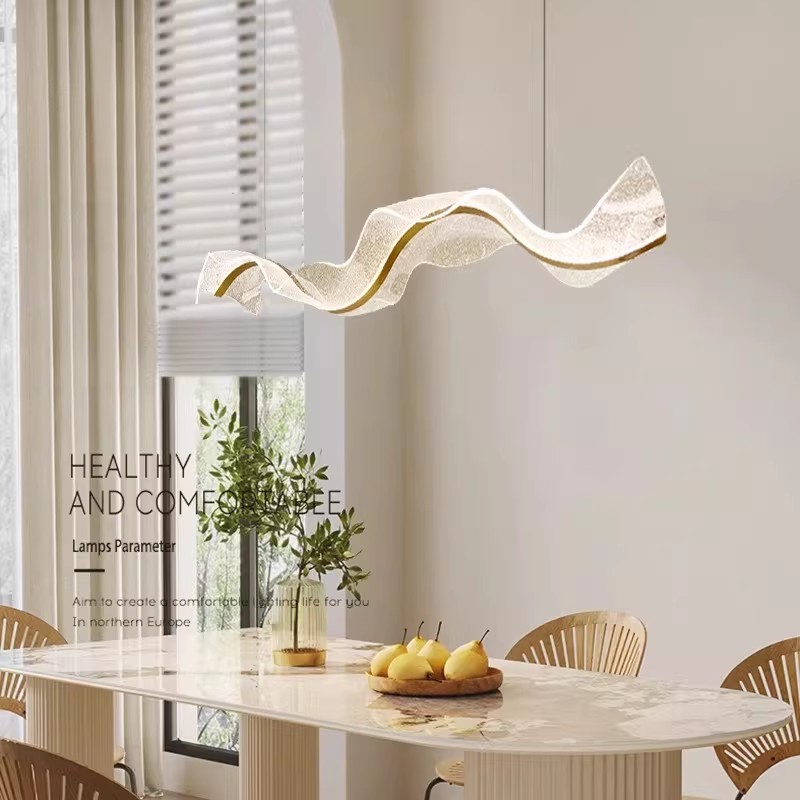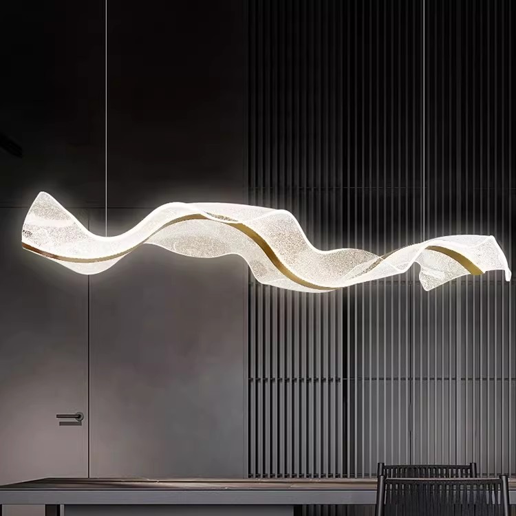 Elevate your dining space with the fluid elegance of our Modern Light Luxury Wavy LED Pendant Light. This sculptural fixture features a continuous, undulating form crafted from frosted, textured acrylic, with a subtle metallic gold accent running through its center. The integrated LED strip emits a soft, diffused glow, creating a warm, inviting ambiance without harsh glare. The minimalist design, with its flowing curves and clean lines, seamlessly complements modern, light luxury, or contemporary dining room decor. The neutral white finish ensures it blends effortlessly with a variety of interior styles, while the wavy silhouette adds a dynamic, artistic touch. As a dedicated lighting manufacturer, we specialize in non-standard customization—from size and shape to color and finish—to perfectly match your project’s unique vision. This wavy LED pendant light delivers timeless style and unparalleled craftsmanship, transforming ordinary dining spaces into extraordinary experiences.