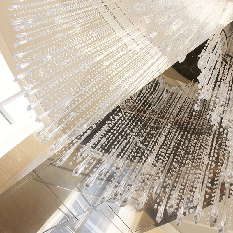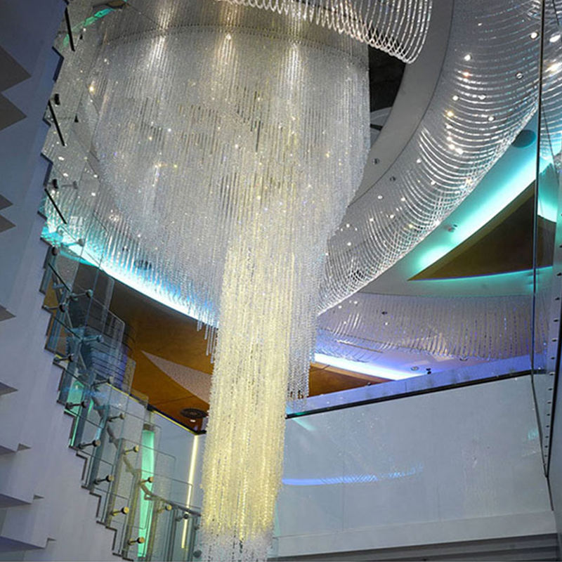 Elevate your grand commercial space with the breathtaking elegance of our Grand Crystal Waterfall Chandelier. This show-stopping fixture features a vast, cascading curtain of thousands of precision-cut crystal strands, suspended from a sleek, curved ceiling frame, creating a luminous, cloud-like silhouette that commands attention. The defining feature is the flawless crystal, which captures and refracts internal LED light to produce a dazzling, multi-dimensional effect throughout the space. Designed specifically for double-height atriums and luxury lobbies, this fixture is the epitome of modern luxury—ideal as a striking centerpiece in high-end hotels, shopping malls, and premium commercial spaces. As a dedicated lighting manufacturer, we can fully customize the size, shape, and crystal density to perfectly match your project’s scale and stle。