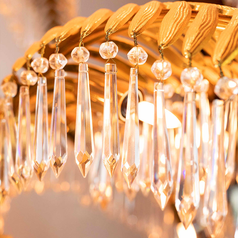 Elevate your grand interior with the opulent artistry of our Golden Palm Tree Crystal Chandelier. This show-stopping fixture features a majestic, multi-tiered palm tree structure, crafted from polished gold-toned metal, with each frond adorned with cascading strands of precision-cut crystal, creating a luminous, tropical-inspired silhouette that commands attention. The defining feature is the flawless crystal, which captures and refracts internal LED light to produce a dazzling, jewel-like effect throughout the space. Suspended from a sleek ceiling mount, this fixture is the epitome of luxury—ideal for grand foyers, luxury villas, or as a striking centerpiece in high-end commercial spaces. As a dedicated lighting manufacturer, we can fully customize the height, frond arrangement, and metal finish to perfectly matc.
