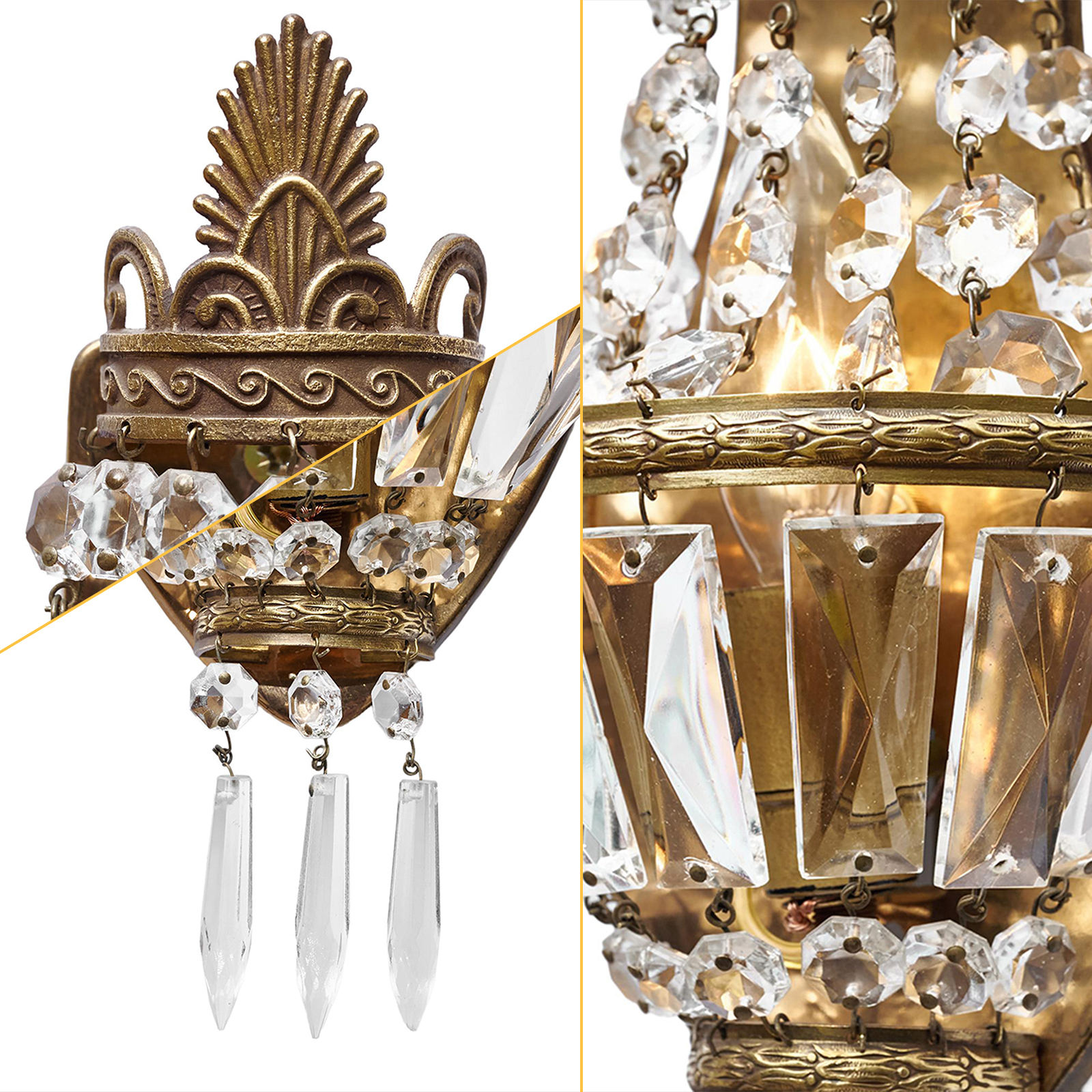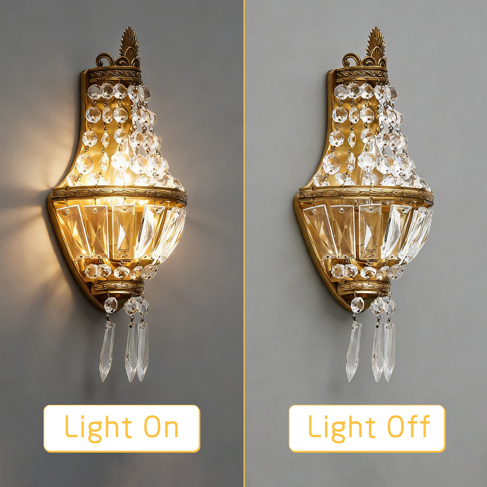 Elevate your bedroom or hallway with the timeless elegance of our Vintage Crystal Wall Sconce. This exquisite fixture features an ornate, antique gold-toned metal frame, adorned with cascading strands of precision-cut crystal, creating a luminous, crown-like silhouette that commands attention. The defining feature is the flawless crystal, which captures and refracts internal light to produce a warm, ambient glow with a dazzling, jewel-like effect throughout the space. Mounted on a sleek backplate, this fixture is the epitome of classic luxury—ideal for adding a touch of opulence to bedrooms, hallways, or entryways. As a dedicated lighting manufacturer, we can fully customize the metal finish to perfectly match your decor.
