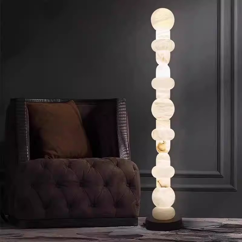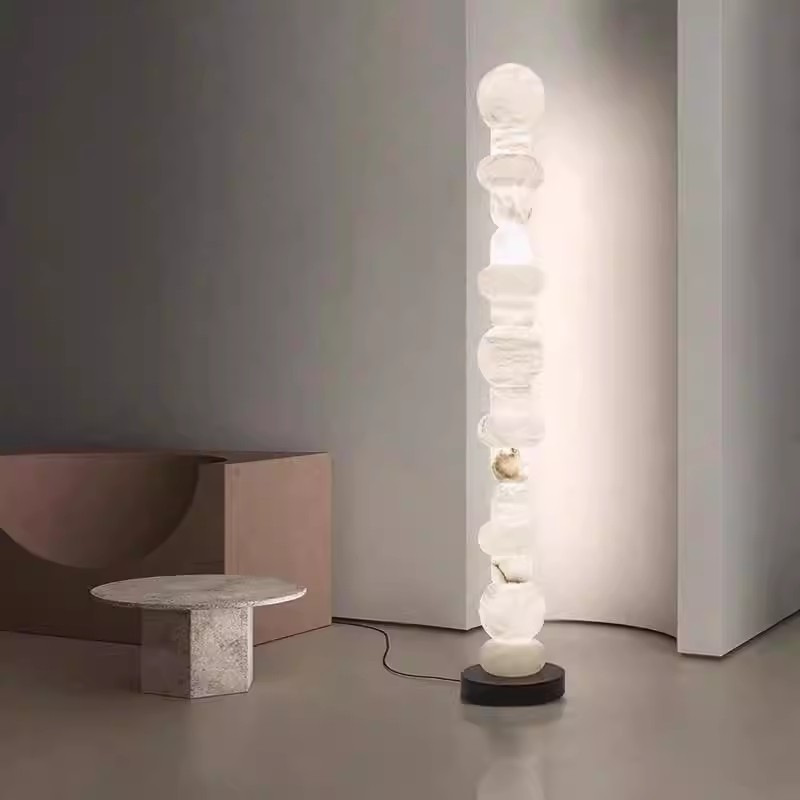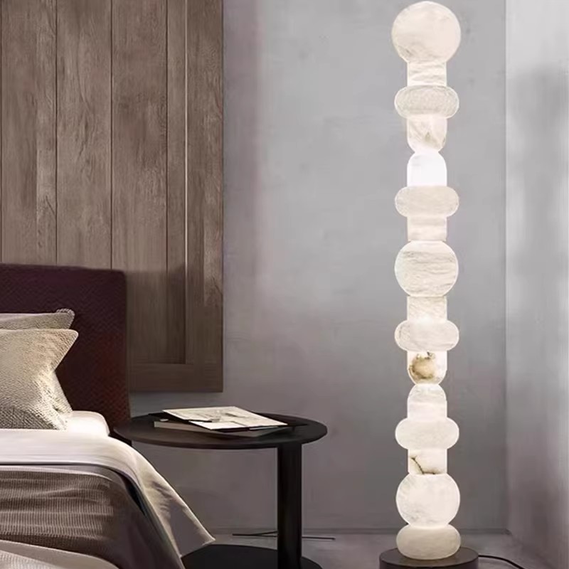 Elevate your bedroom or living space with the modern sophistication of our Stacked Alabaster Floor Lamp. This striking fixture features a vertical design of stacked, natural alabaster discs in varying sizes, creating a sculptural, organic silhouette that commands attention. The defining feature is the translucent alabaster, which diffuses internal LED light to produce a soft, ambient glow with a subtle, stone-like texture throughout the space. Paired with a sleek, dark base, it balances aesthetic charm and stable placement. Equipped with a wired power supply and convenient switch control, this lamp is the epitome of contemporary luxury—ideal for adding a touch of understated elegance to bedrooms, living rooms, or entryways. As a dedicated lighting manufacturer, we can fully customize the finish to perfectly match your decor.
