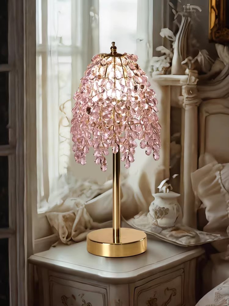 Elevate your bedside or living area with the opulent glow of ourLuxury Crystal Tassel Table Lamp. This showstopping fixture features a cascading shade of transparent crystal beads, finished with a warm yellow gradient sheen that mimics a shower of starlight for unmatched translucency. Its defining feature is the precision-cut crystal, which refracts light to cast delicate, mesmerizing patterns throughout the room. Crafted for both beauty and stability, it pairs a sleek metal stem with a classic retro copper base. An independent switch on the power cord ensures effortless operation, making it the ultimate luxury accent for bedrooms and living rooms alike.