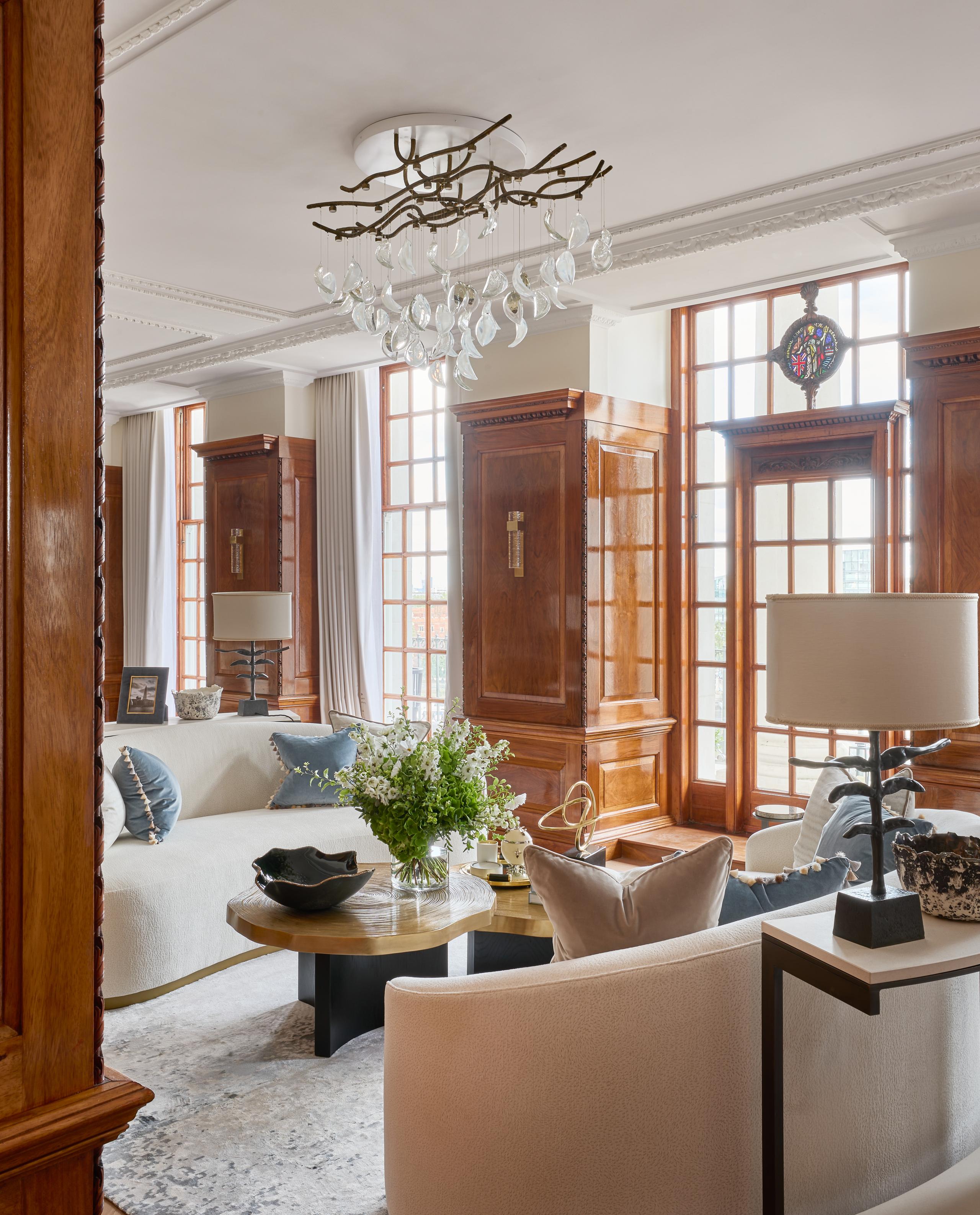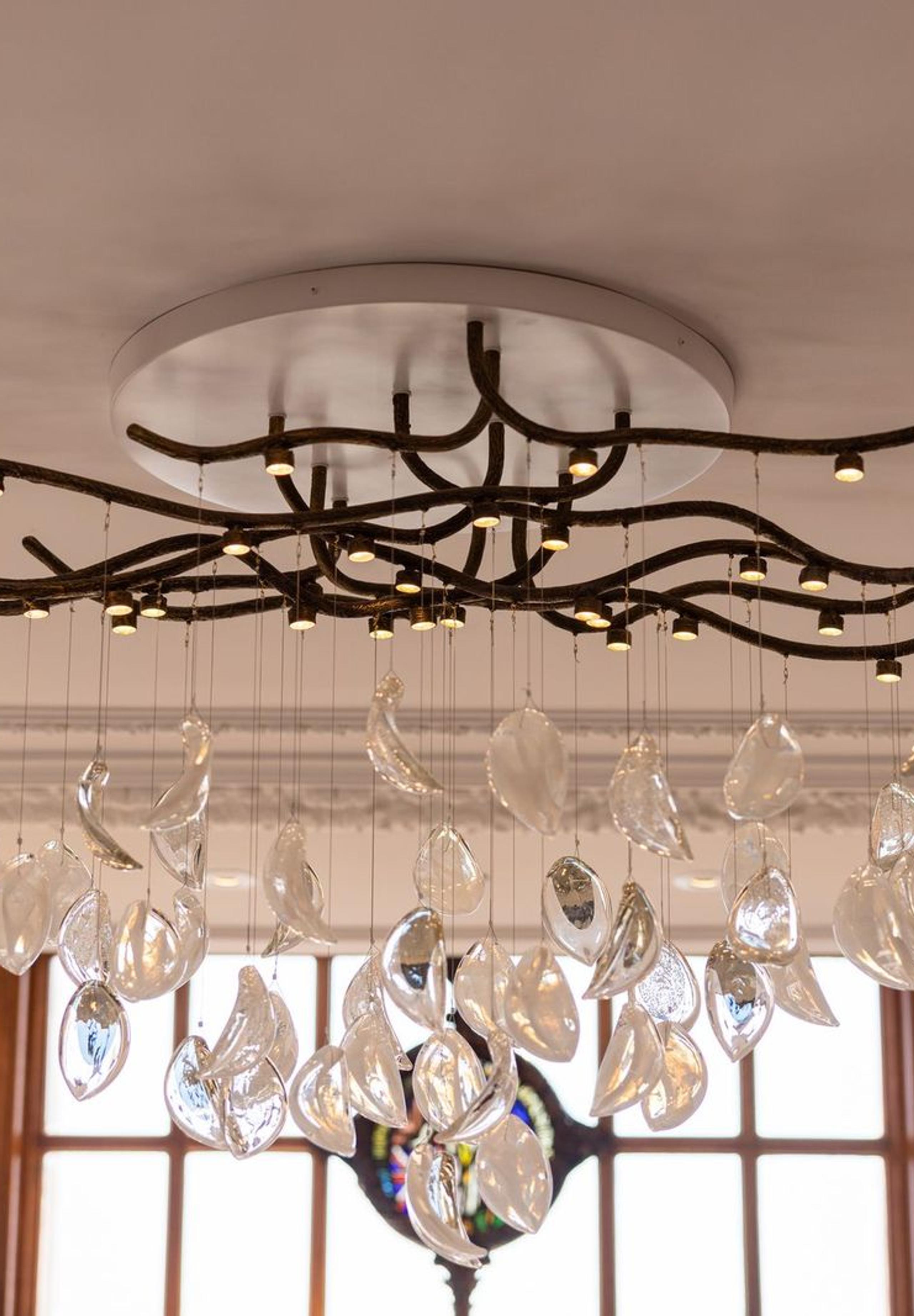 This chandelier features exquisitely handblown crystal petals with metallic finish, boasting exceptional clarity and a luminous shimmer that catches the light from every angle. Suspended from an aged bronze branch-like metal structure, the design artfully mimics the grace of natural twigs, creating a dramatic sculptural silhouette. Blending organic poetry with historic elegance, this chandelier embodies modern luxury natural artistry. It stands as the ultimate sophisticated centerpiece, elevating the ambiance of high-end living and dining spaces with timeless artistic charm.